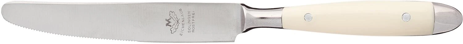 Obstmesser aus Acryl in weiß. Eichenlaub Besteck wird aus einem Stück rostfreien Chrom-Vanadium Schmiedestahl geschmiedet, von Hand geschliffen, angepasst und mit feinem Finish versehen.