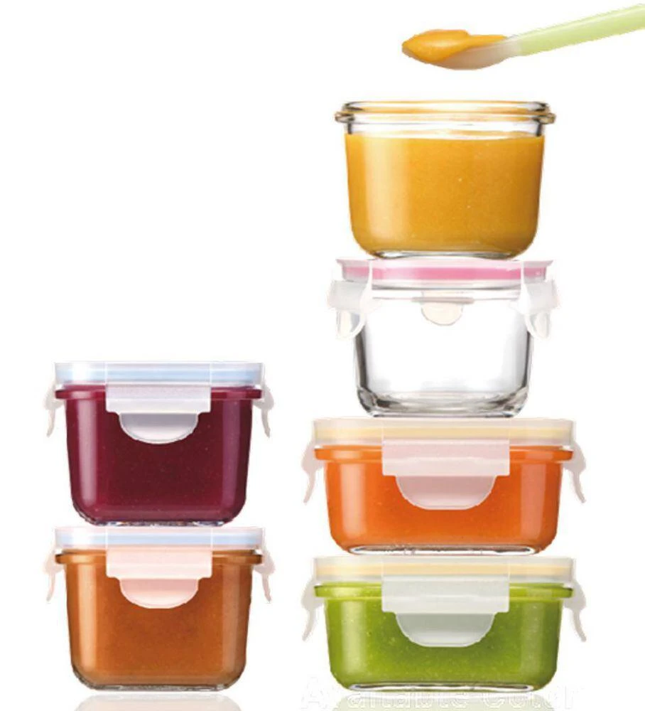 Die drei Dosen haben babygerechte Größen (165 ml) für Brei, Obst oder kleine Zwischenmahlzeiten. Auch können so einzelne Zutaten getrennt voneinander aufbewahrt und natürlich auch überallhin mitgenommen werden. Die Vorratdosen Baby Meal Set sind aus besonders robustem Glas gefertigt, das 3 bis 5 mal härter als herkömmliches Glas ist. Somit sind die Dosen extrem widerstandsfähig. Zudem sind die Frischhaltedosen komplett aus schadstofffreien, natürlichen Materialien hergestellt, wodurch sie die gesunde Alternative zu Dosen aus Kunststoff darstellen. Praktischerweise ist der Deckel mit einrastenden Clip-Verschlüssen ausgestattet, wodurch ein sicherer Transport garantiert ist. Aufgrund der Silikondichtung am Deckel halten die Behälter komplett dicht und sind ausflusssicher. Wenn Sie Ihren Babybrei selbst zubereiten, können Sie die Mahlzeiten direkt in die Behälter füllen, in den Kühlschrank stellen oder auch einfrieren. Bei Bedarf können die Dosen anschließend in der Mikrowelle oder im Wasserbad erwärmt werden.