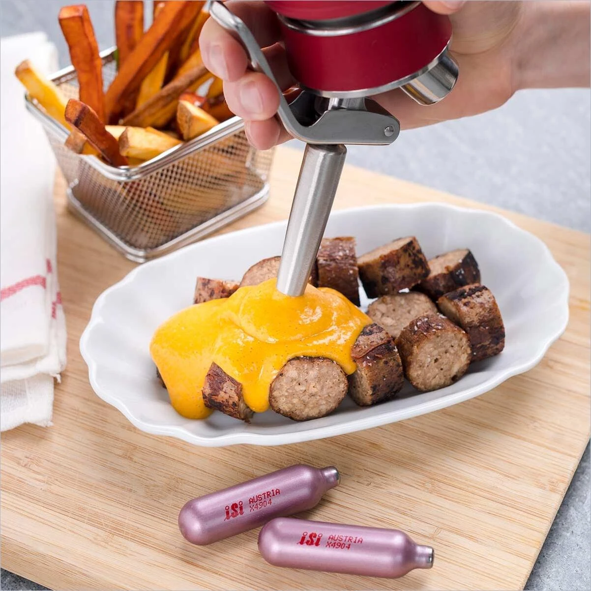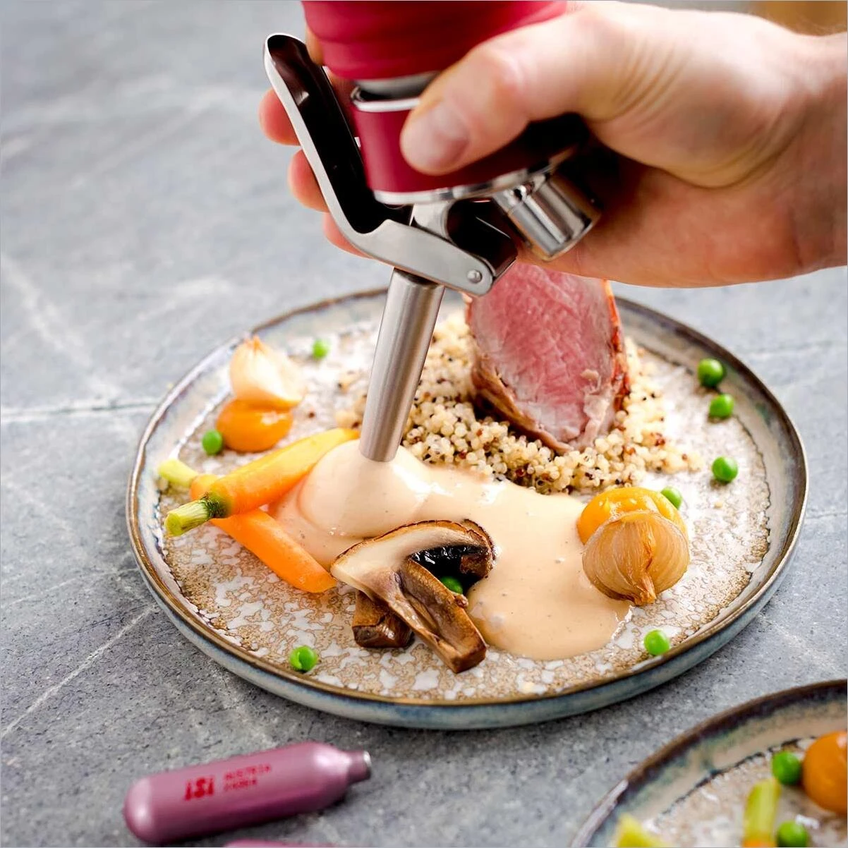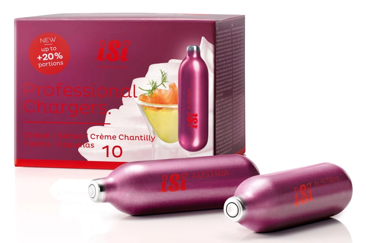 Egal, ob Sahne, Saucen, Espumas, Suppen, Teige oder Toppings für Kaffee & Getränke – die iSi. Ihre ausgefallenen Kreationen mit den iSi Professional Chargers sind nicht nur köstlich, sondern durch ein höheres Aufschlagvolumen auch leichter als zuvor. Die iSi Professional Chargers eignen sich zur Verwendung mit allen iSi Sahnegeräten.