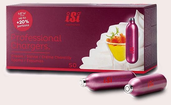 Egal, ob Sahne, Saucen, Espumas, Suppen, Teige oder Toppings für Kaffee & Getränke – die iSi. Ihre ausgefallenen Kreationen mit den iSi Professional Chargers sind nicht nur köstlich, sondern durch ein höheres Aufschlagvolumen auch leichter als zuvor. Die iSi Professional Chargers eignen sich zur Verwendung mit allen iSi Sahnegeräten.