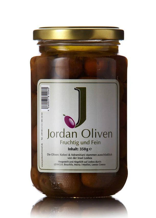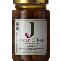 Für die Jordan Oliven, fruchtig und fein, werden die beiden Sorten Kolovi und Adramitiani verwendet. Sie werden unbehandelt und ohne künstliche Konservierungsstoffe in eine Essig-Meersalz-Olivenöl Mischung eingelegt. Dadurch bleibt das volle Aroma dieser beiden Sorten vollständig erhalten.