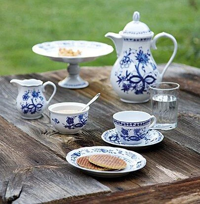 Kahla, schmeckt gleich noch mal so gut. Kleine Besonderheiten wie der stilisierten Rosenknospe, der bogenförmige Rand und der floral geschwungene Henkel, sind eine tägliche Freude für das Auge. Die intensive blaue Farbe – ihr Geheimnis liegt in der Verwendung von Kobaltoxid – weckt die Lebensgeister. Da kann das Frühstück mit dem Zwiebelmuster von Kahla schon mal bis zum Mittag dauern.
