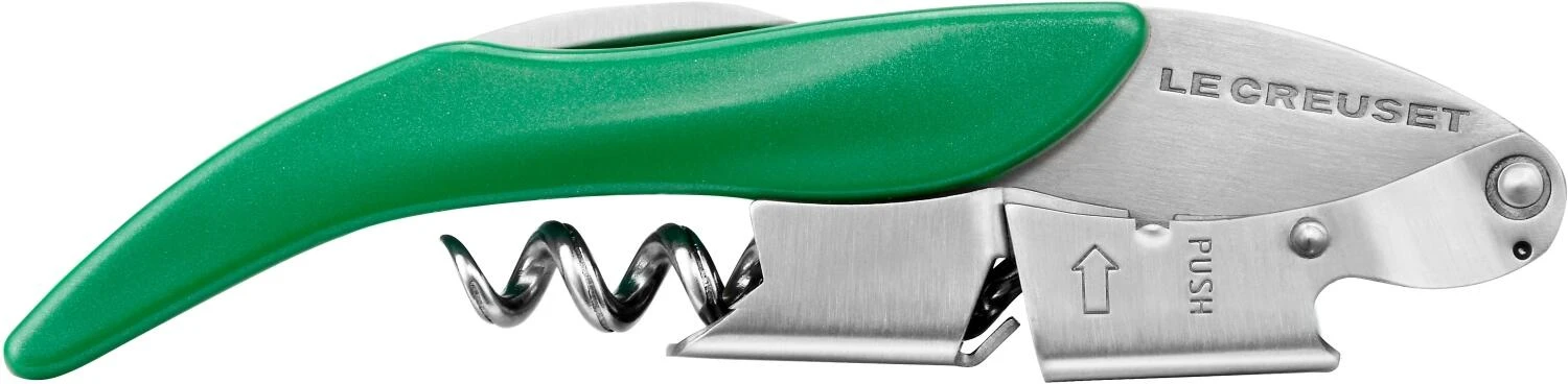 Le Creuset Screwpull Kellnermesser WT-130 grün. Bei Weinliebhabern beliebt: Korkenzieher, Kapselschneider und Flaschenöffner in einem. Für alle Korken und Flaschen geeigenet.
