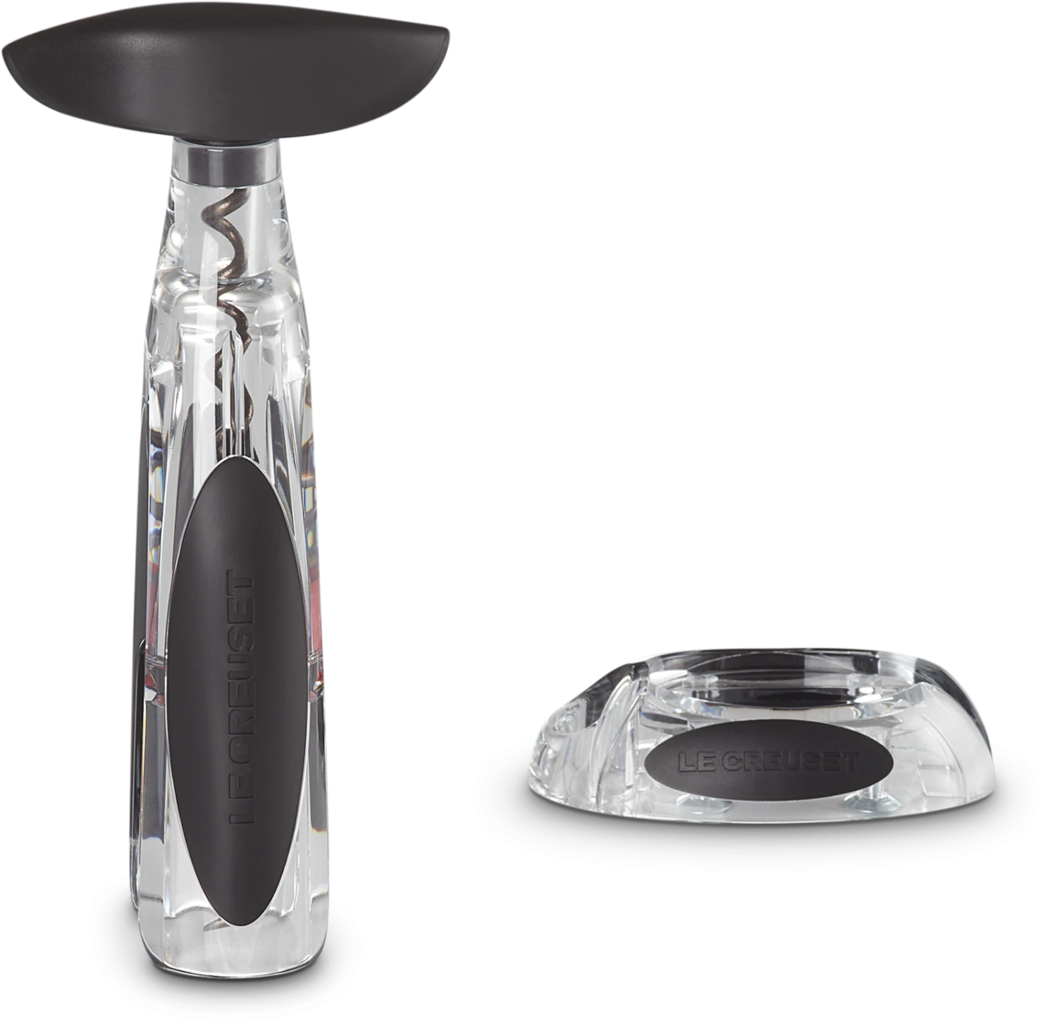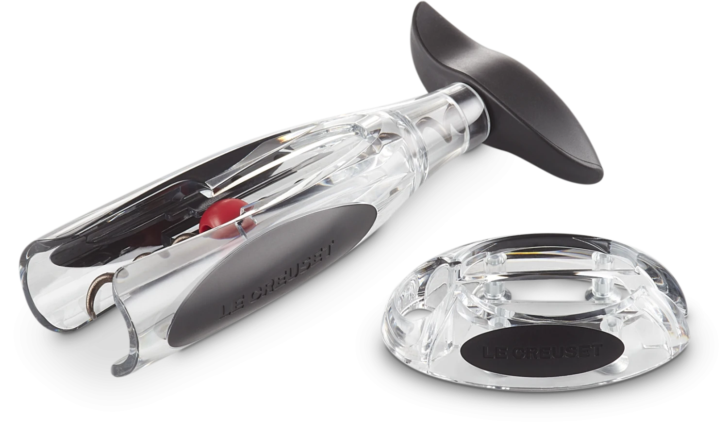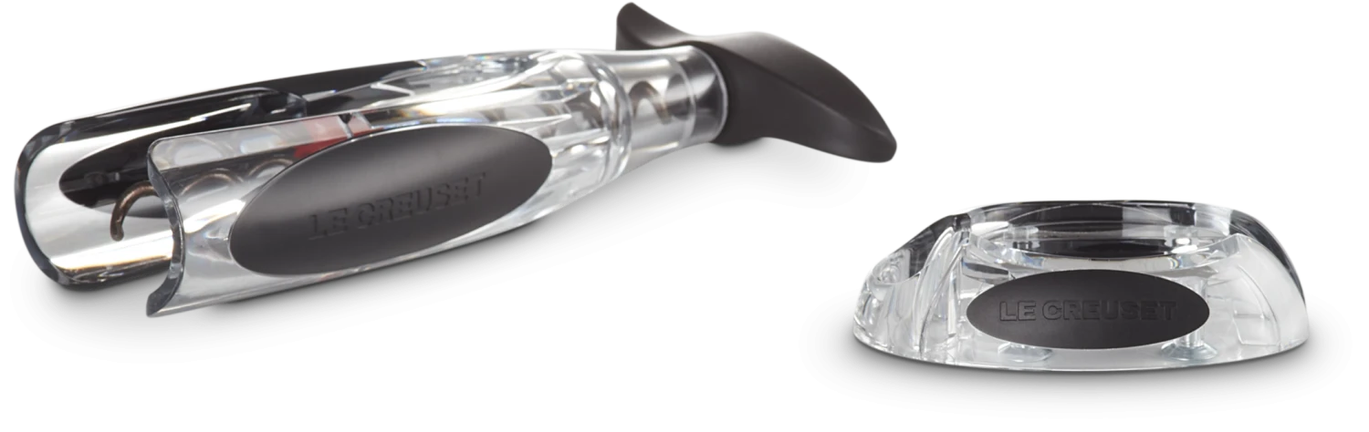 Le Creuset Screwpull Korkenzieher GS-200 mit Active-Ball, der das Einklemmen des Korkens im Korpus verhindert mit dem Kapselschneider im praktischen Standfuß.