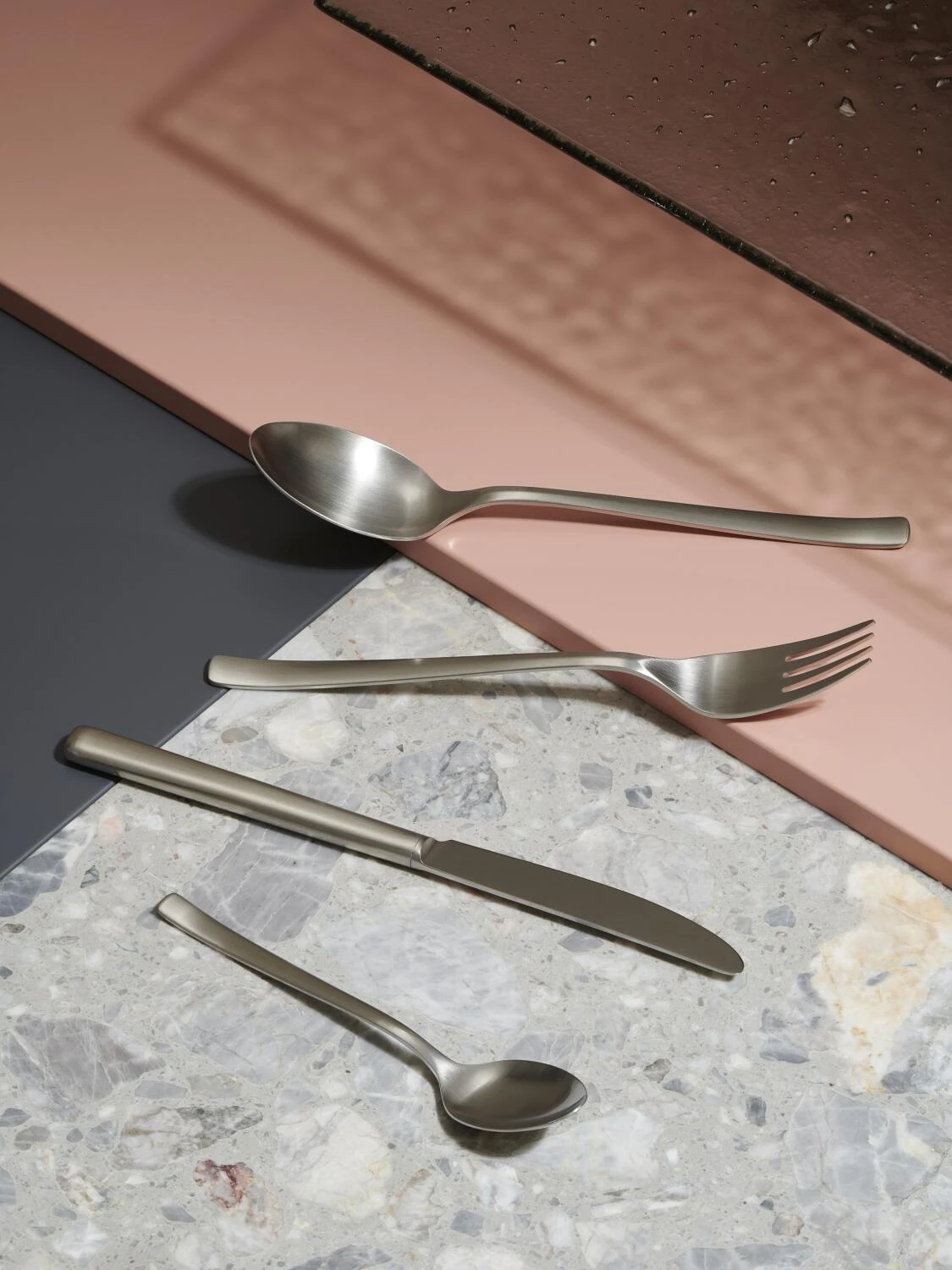 Das Besteckset 25 steht für Zurückhaltung und puristische Eleganz. Durch die Verknappung der Formelemente wirkt die Serie zeitlos und aktuell.