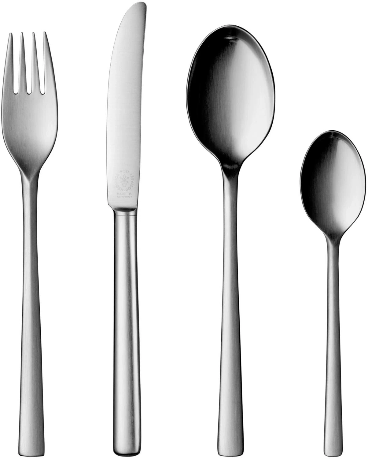 Besteckset 25, 4tlg. Schlichtes und klassisches Tafelbesteck aus matt gebürstetem Edelstahl 18/10.
