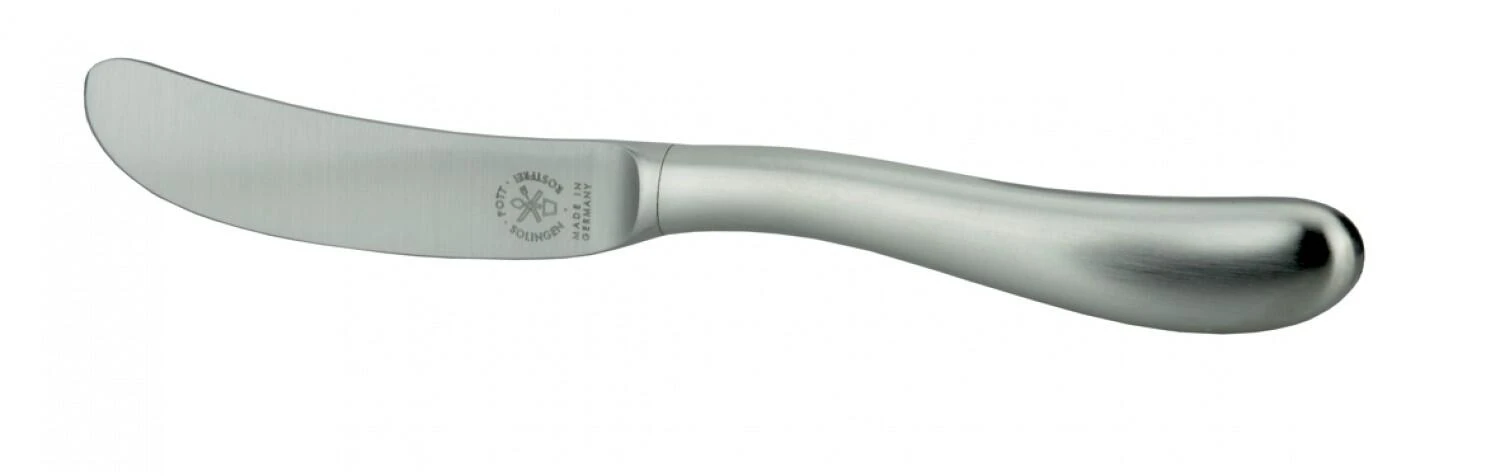 Edles, geschwungenes Buttermesser von Pott aus dem Design von Ralph Krämer für ein müheloses Schneiden und Schmieren von Butter.
