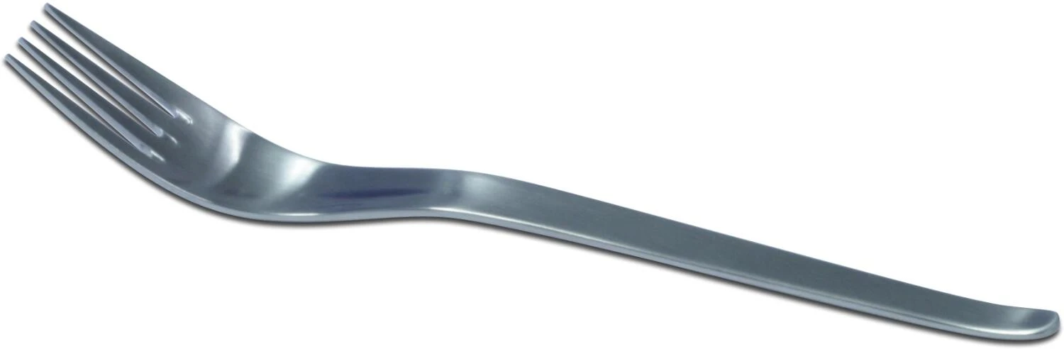 Pott Dessertgabel 22. Dessertgabel aus matt gebürstetem Edelstahl 18/10 in auffälligem Design, das an die Natur und herabfallende Blätter erinnern soll.