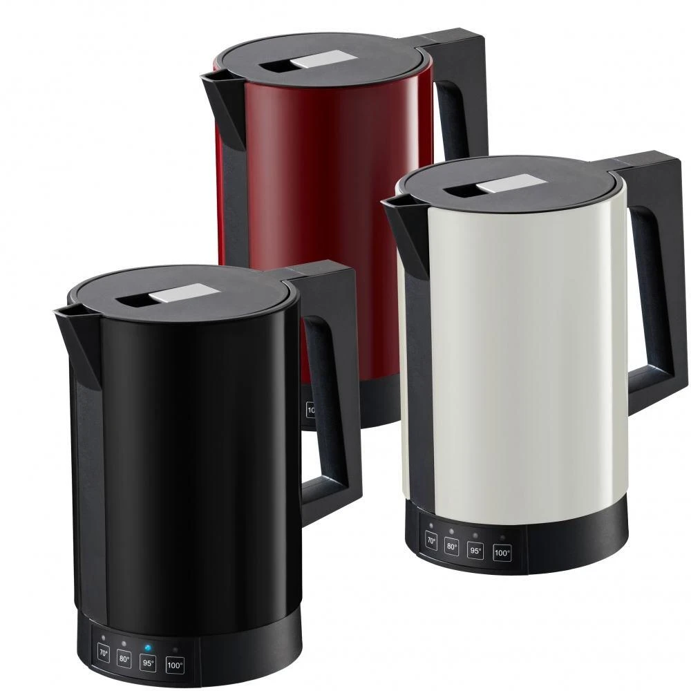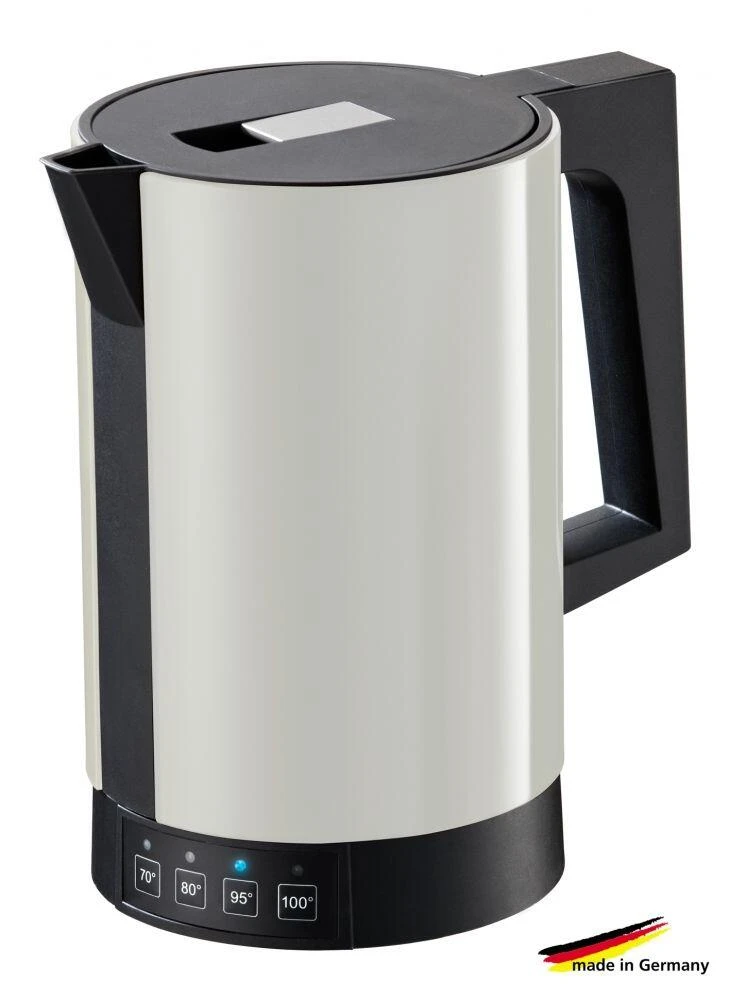 Der kabellose Wasserkocher mit 360°-Basisstation von ritter hat ein wärmeisoliertes Außengehäuse aus hochwertigem Acrylglas. Durch ein beidseitiges Wasserstands-Sichtfenster kann die Füllmenge abgelesen werden. Die eingestellte Temperatur von 70°, 80°, 95° oder 100° C, wird mittels LED’s angezeigt. In puncto Sicherheit erfüllt der Wasserkocher ritter fontana5 mit Überhitzungsschutz, Trockengehschutz und automatischem Abschalten alle Sicherheitsaspekte. Und natürlich ist der Wasserkocher fontana5 „made in Germany“ – wie alles von ritter.