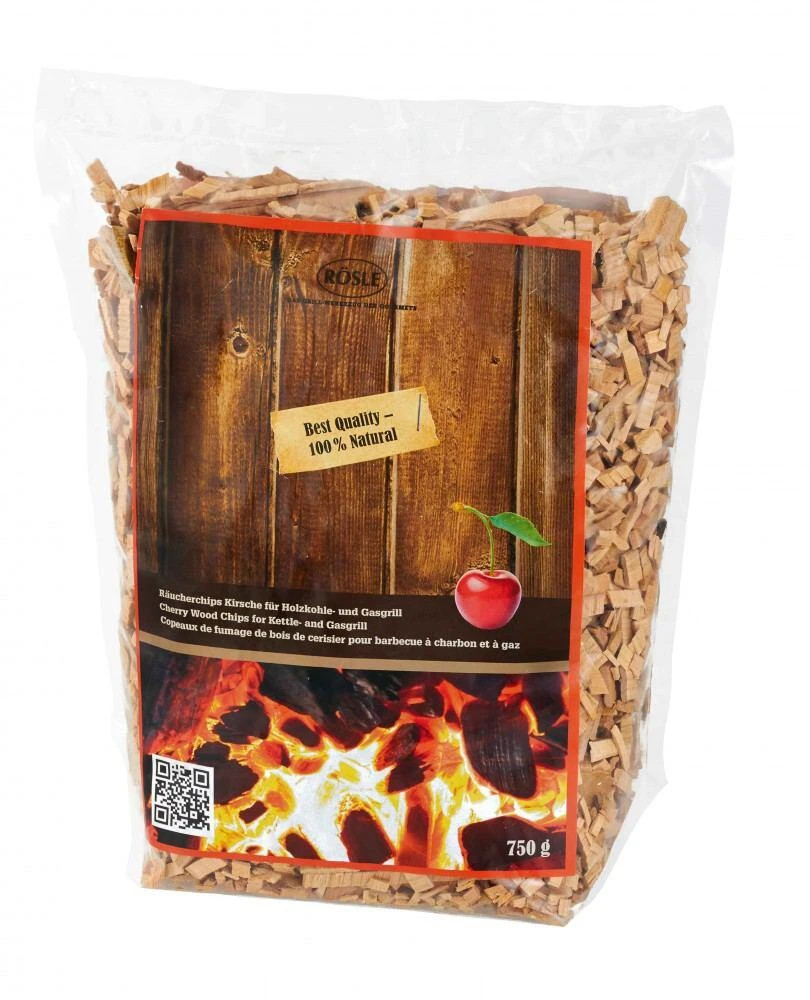 Rösle Räucherchips Kirsche 750 g. Die Räucherspäne für ein mild-süßlich-fruchtiges Raucharoma des Grillguts.