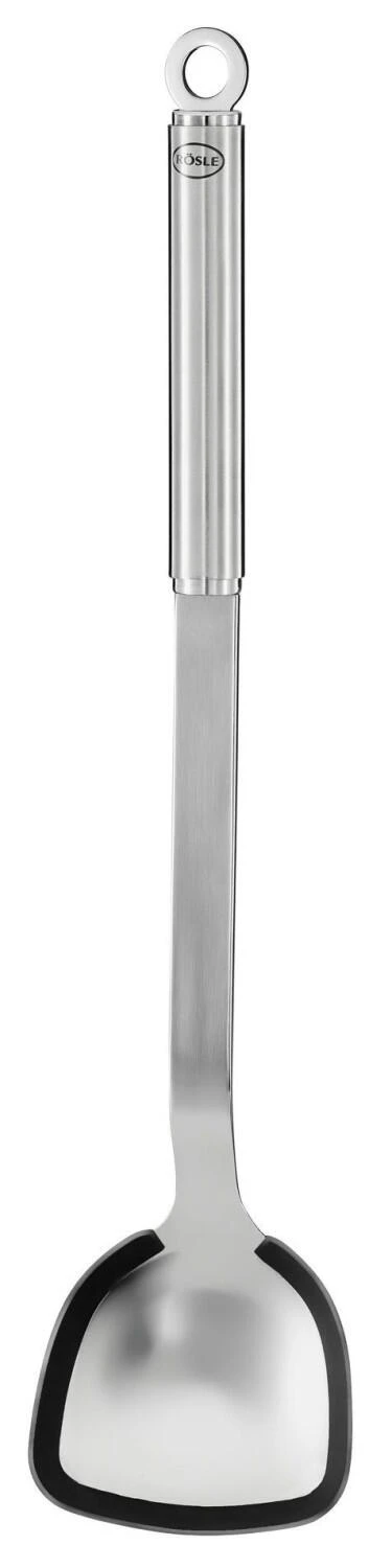 Rösle Rundgriff Woklöffel mit Silikonlippe. Der mit Silikon beschichtete Löffel eignet sich besonders gut zum Wenden, Verschieben und Herausschöpfen von Speisen aus dem Wok.