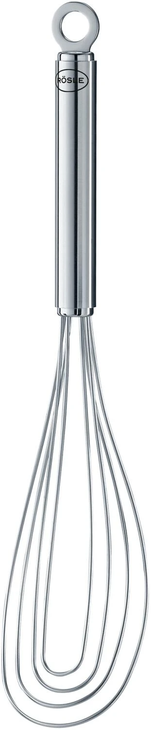 Elastizität, Form, Stärke und Länge der Drahtrührgeräte von Rösle sind perfekt auf die Aufgabenbereiche abgestimmt. Die Verankerung der Drähte im handlichen Rundgriff ist stabil und wasserdicht. Die ausgewogene Gewichtsverteilung erleichtert das Rühren. Das neuartige Design vereinfacht die Reinigung. Der praktische Aufhängering sorgt für Ordnung in der Küche. Die Verwendung von Edelstahl 18/10 garantiert Geschmacks- und Geruchsneutralität und eine nahezu unbegrenzte Lebensdauer.