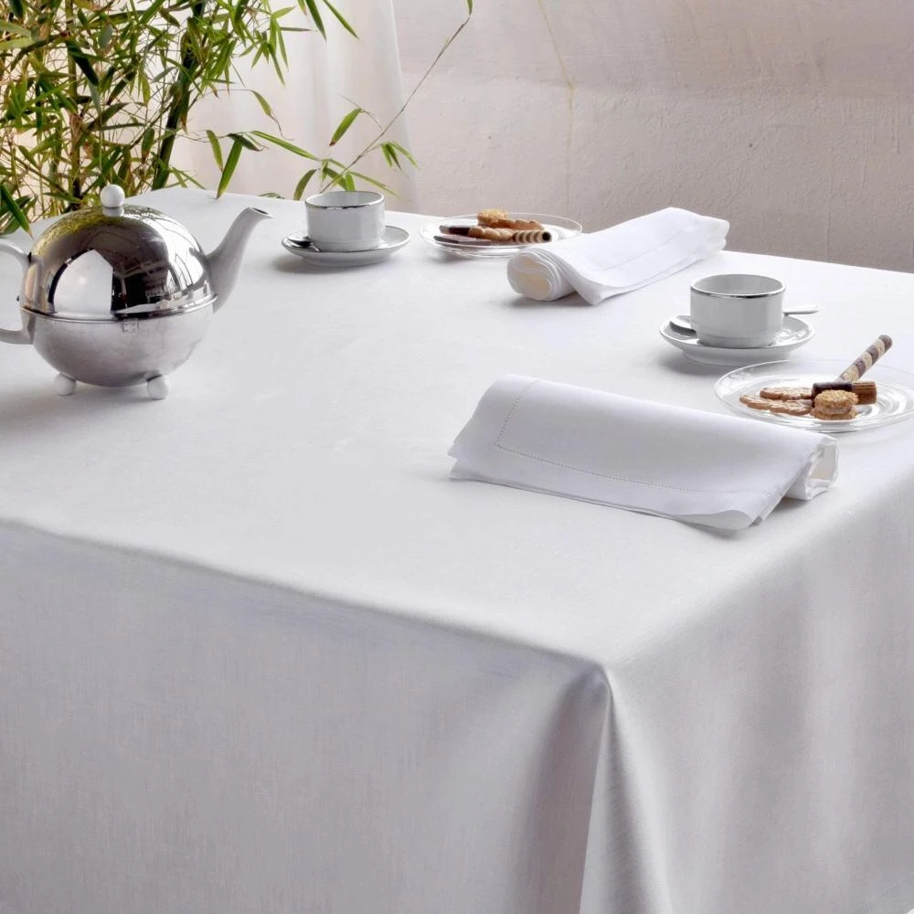 Tischdecke Aurelia in weiß. Tischdecke aus 100% Reinleinen in Masters of Leinen-Qualität.