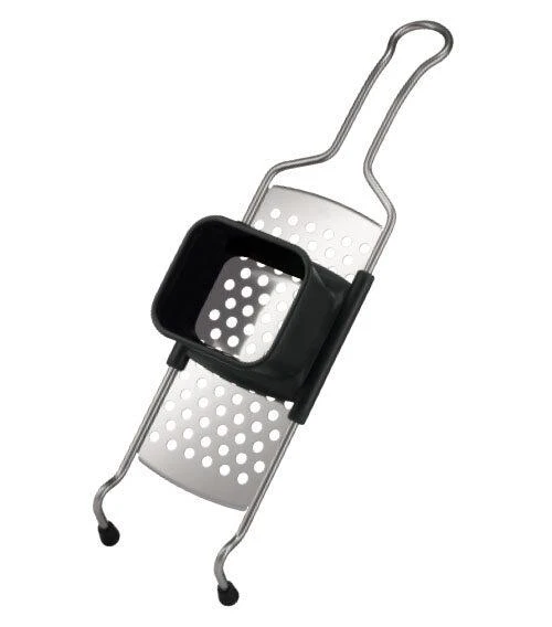 Für „Allgäuer Spätzle“, bestehend aus zwei Teilen. Ergonomisch geformter Rahmen mit eingeschweißter Hobelplatine und Trichteraufsatz aus Kunststoff. Die konische Form des Trichters gewährleistet eine zügige, vollständige Verarbeitung des Teiges. Durch die fugenlose Konstruktion ist der Hobel besonders leicht zu reinigen.
