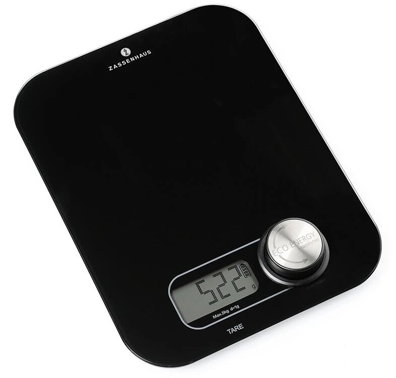 Zassenhaus Digitalwaage Eco Energy in schwarz. Clevere Küchenwaage, die ohne Batterien auskommt.