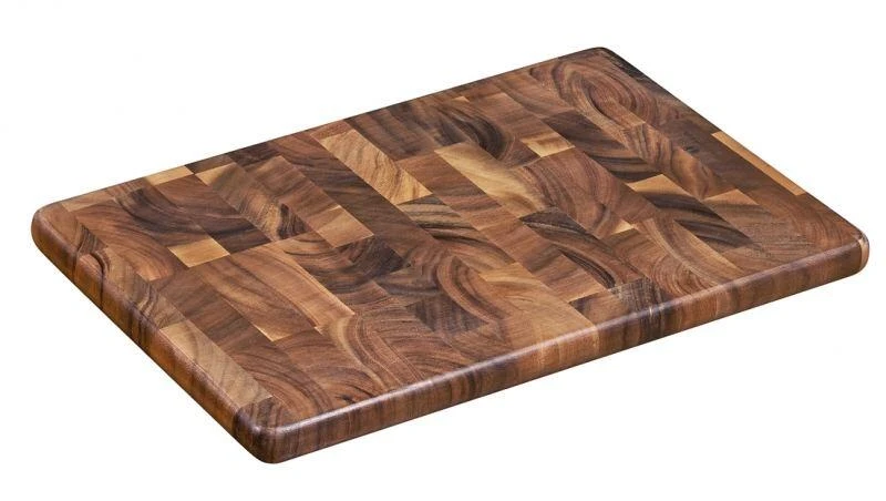 Tranchierbrett aus Stirnholz der Akazie. Arbeiten wie die Profis. Das Stirnholz der Akazie ist besonders robust, belastbar und langlebig. Daher eignet es sich ideal als Arbeits- und Schneitunterlage in der Küche.